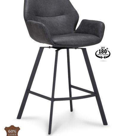 Barkruk met arm Luton – ZH 65 Microleder Bull Anthracite 67 Poot Black 180° Return-systeem