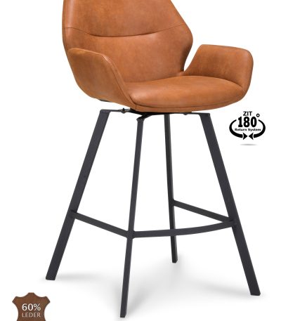 Barkruk met arm Luton – ZH 65 Microleder Bull Camel 09 Poot Black 180° Return-systeem