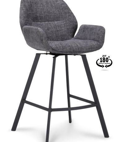 Barkruk met arm Luton – ZH 65 Stof Miami Darkgrey 68 Poot Black 180° Return-systeem