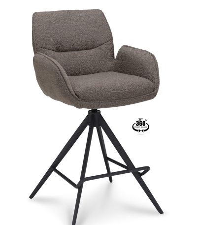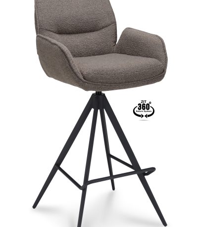 Barkruk Bliss – ZH 65 Stof Alpine Brown 15 Poot Zwart 360° Retoursysteem