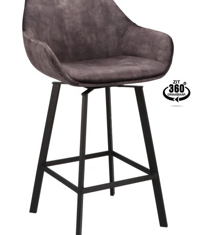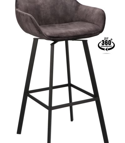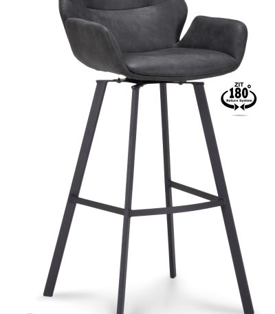 Barkruk met arm Luton – ZH 80 Microleder Bull Anthracite 67 Poot Black 180° Return-systeem