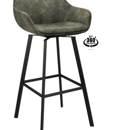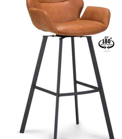Barkruk met arm Luton – ZH 80 Microleder Bull Camel 09 Poot Black 180° Return-systeem