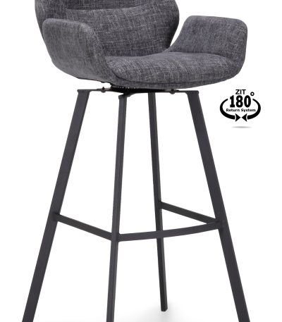Barkruk met arm Luton – ZH 80 Stof Miami Darkgrey 68 Poot Black 180° Return-systeem
