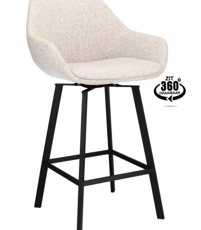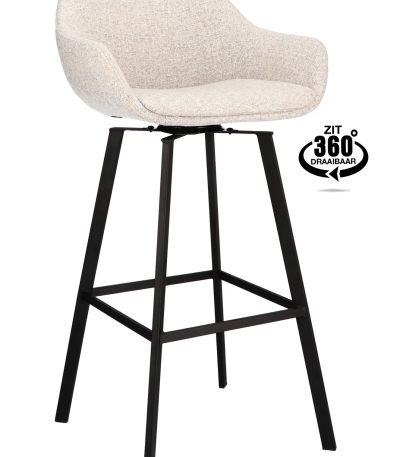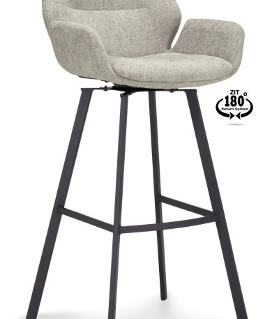 Barkruk met arm Luton – ZH 80 Stof Miami Taupe 12 Poot Black 180° Return-systeem