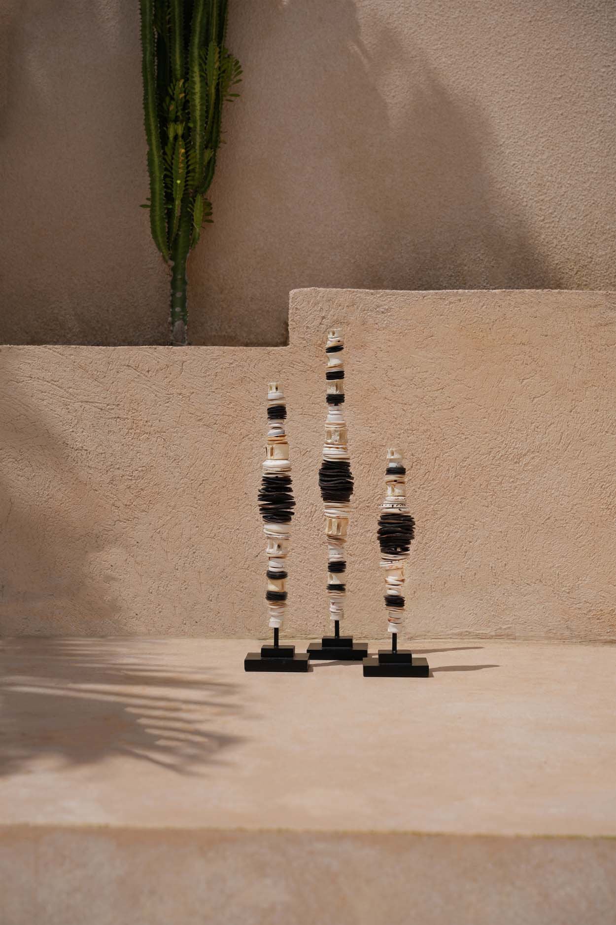 Prachtige tribale luxe met een vleugje kust. Deze unieke en indrukwekkende stukken zullen zeker jouw favoriete opvallende trio zijn in je eigen huis, net zoals bij ons!