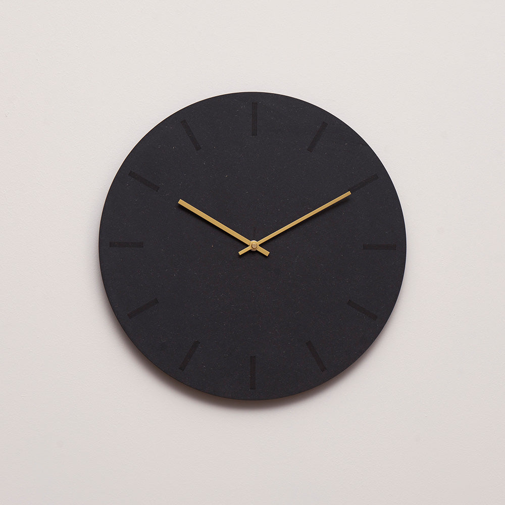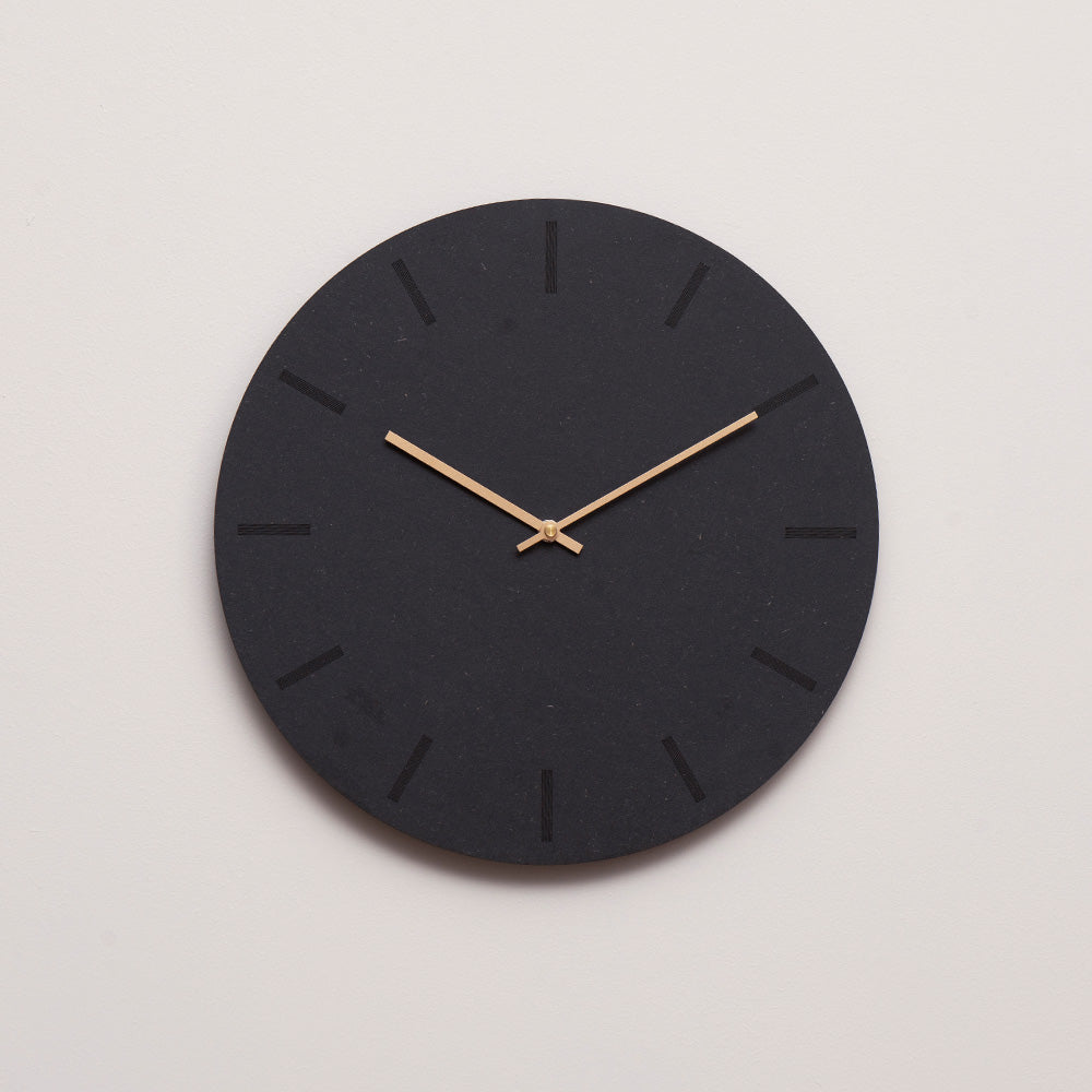 Het wandklokje in zwart, verkoold hout heeft een ruwe maar eenvoudige uitstraling. De ronde wijzerplaat van door-en-door gekleurd MDF past perfect in de meeste moderne Scandinavische huizen met zijn minimalistische ontwerp. De zwarte, matte en gladde afwerking en het kleurenspel kunnen worden gecombineerd met al onze wijzers, afhankelijk of je een strakke, zwarte look wilt of een warme of neutralere uitstraling.