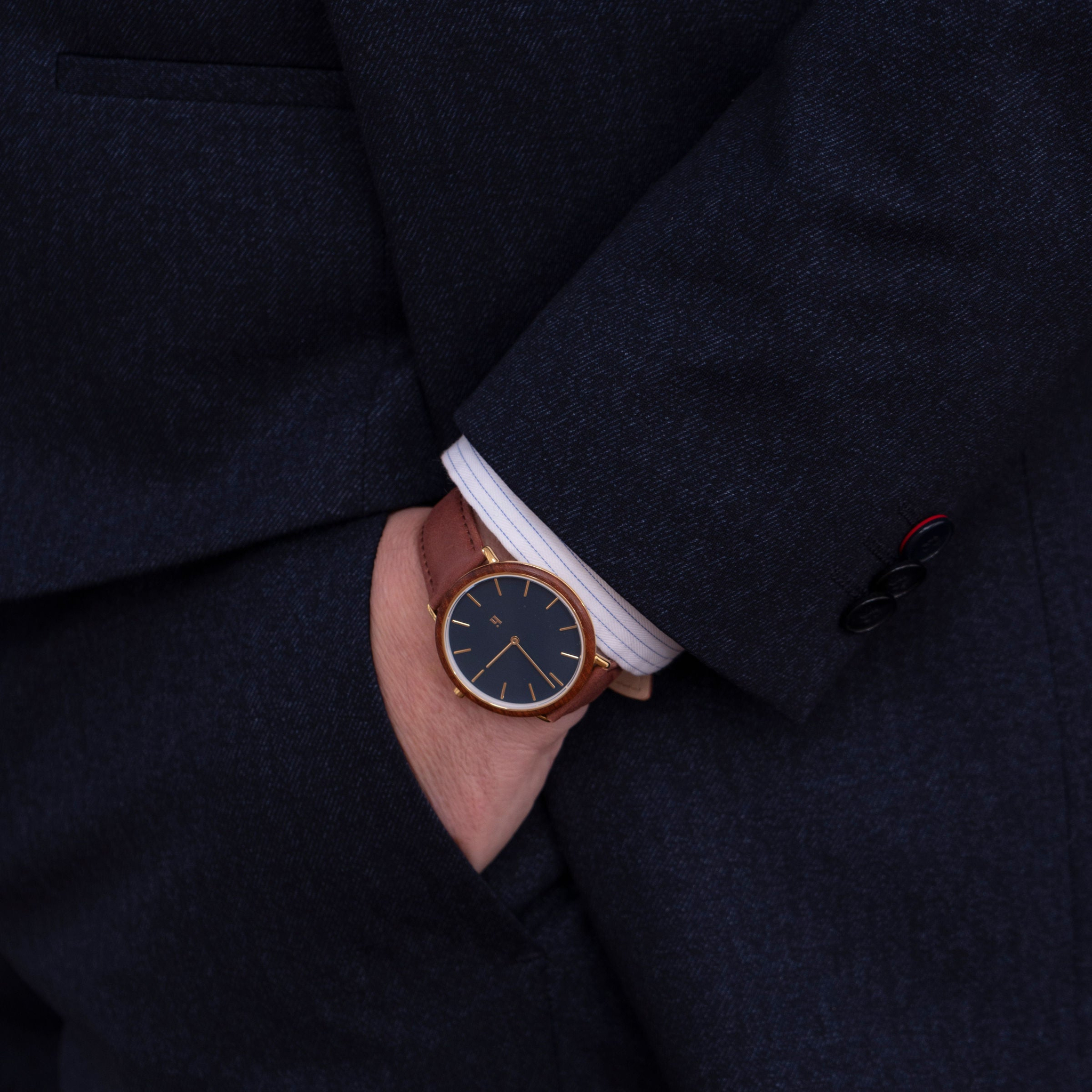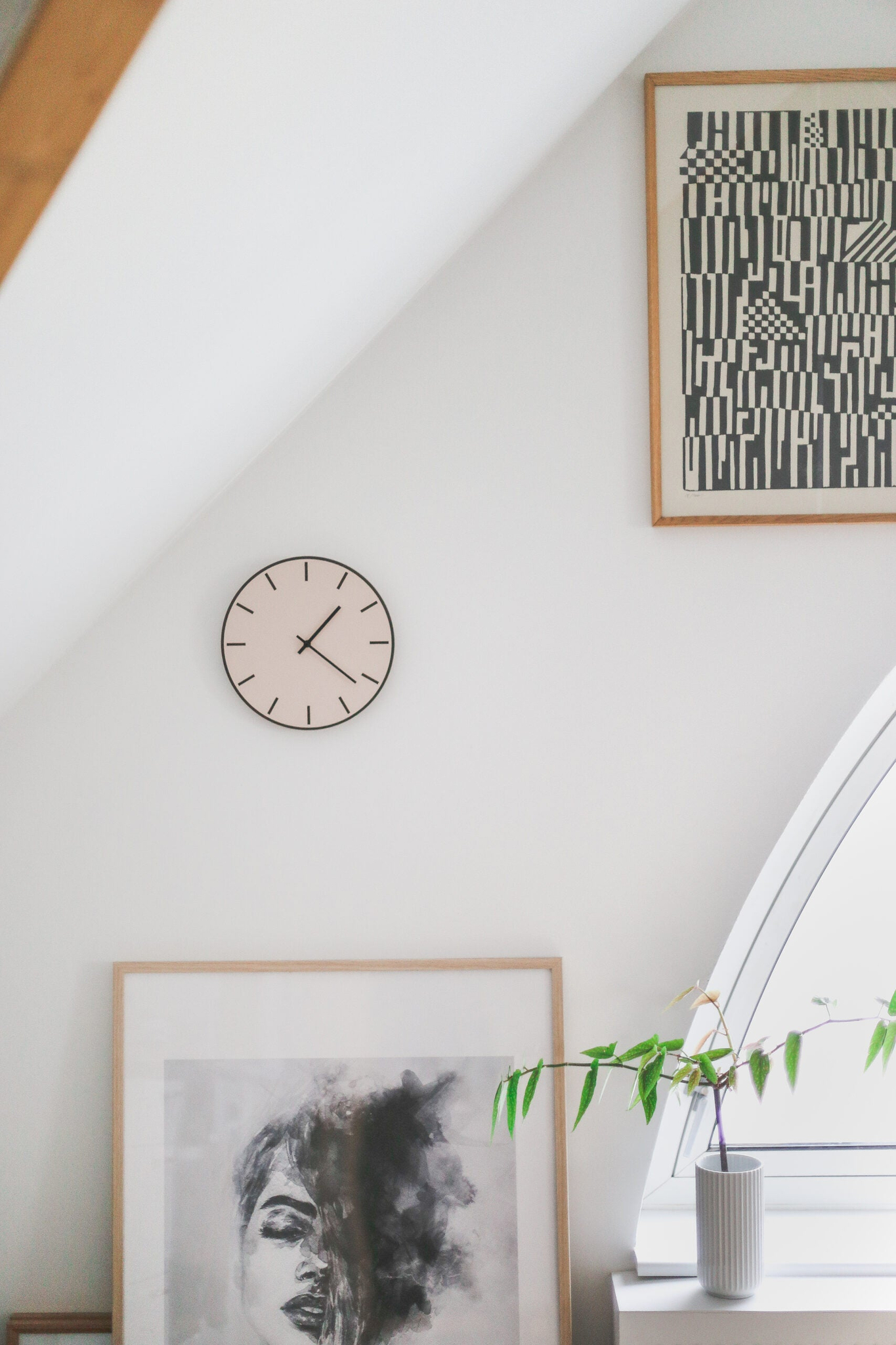 A timeless, round wall clock with a minimalist expression. The dial is crafted from dark oak veneer and coated with dusty rose linoleum, creating a beautiful contrast that highlights the hour markers distinctly. Customize it with your choice of hands to create a wall clock that fits perfectly in the modern Nordic interior style.