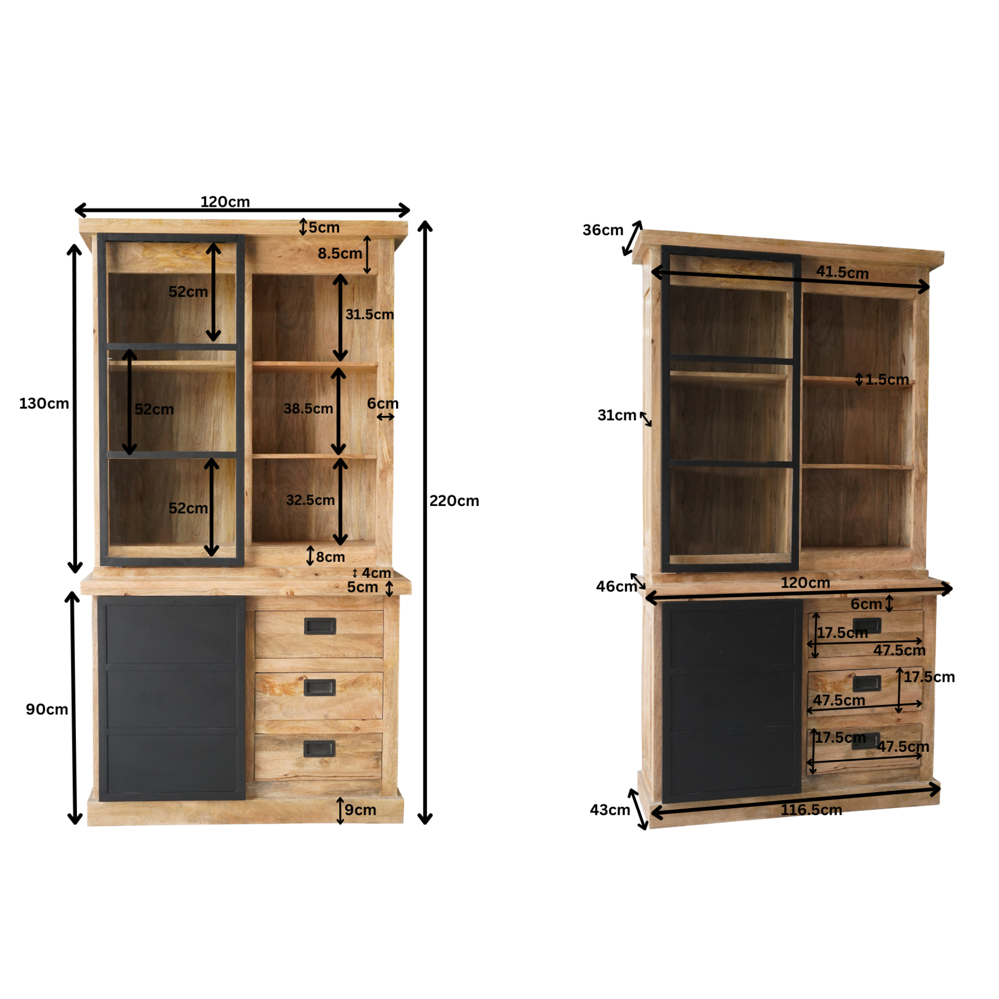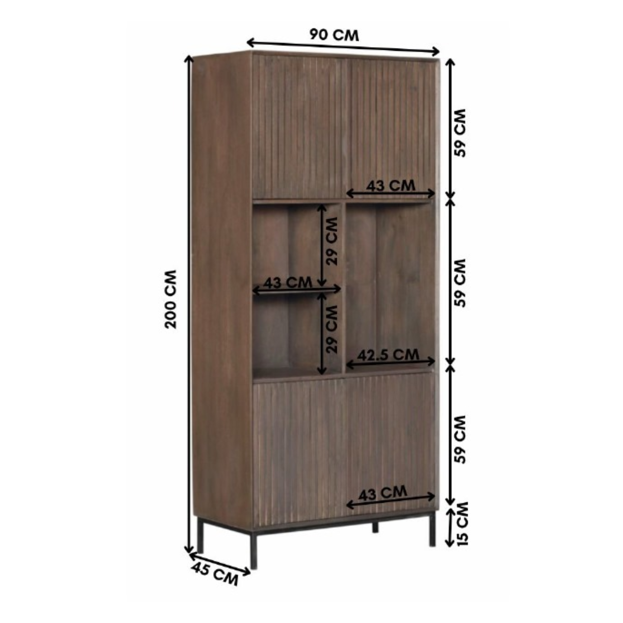 Discover the Brussels Black Bookcase, crafted from mango wood and adorned with a stunning black finish. This bookcase features a sleek and modern design that blends functionality with style. It offers five open compartments and two handle-less doors with a push-to-open system, providing ample space for displaying books, decorative pieces, and storing various items conveniently.