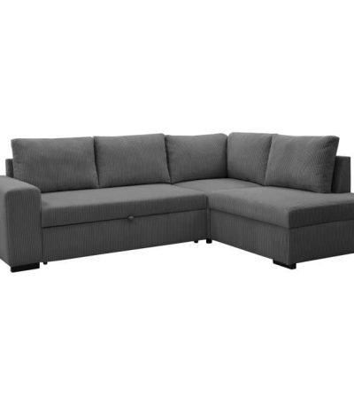 LINCOLN Omkeerbare hoekbank 4 tot 5 plaatsen – Antraciet ribfluweel stof – Opbergdoos – L247 x D 183 x