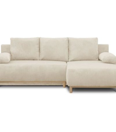 MIKA 3-zits converteerbare hoekbank rechts – Beige ribfluweel – Opbergdoos – L218 x D98/145 x H84 cm