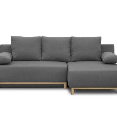 MIKA 3-zits converteerbare hoekbank rechts – Lichtgrijze stof – Opbergdoos – L218 x D98/145 x H84 cm
