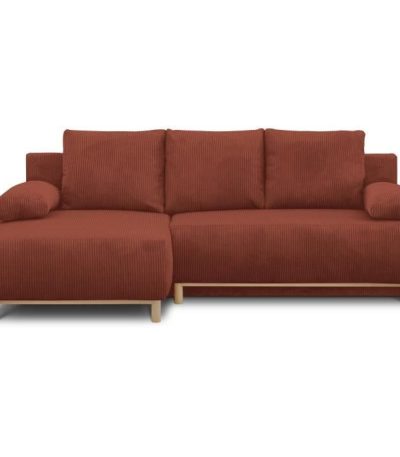 MIKA Hoekbank links – 3-zits – Roestkleurige corduroy stof – Opbergvak – 192 x 84 x 93 cm