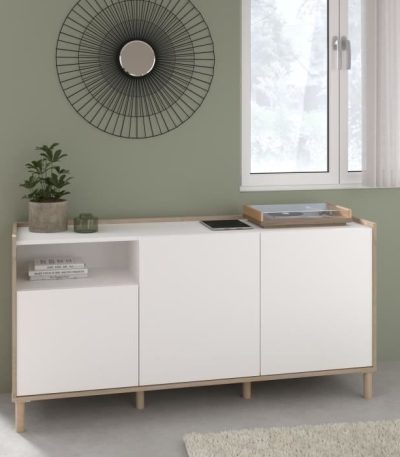 MORPHOS dressoir – L 150 x D 40 x H 74,5 cm – Wit / Eiken decor – 3 deuren – PARISOT