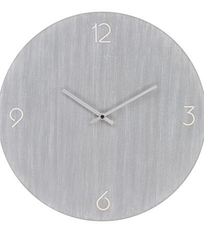 € 30,00Wall clock made of MDF material in a stylish light grey color. It features a silent movement mechanism and has a diameter of 40 centimeters.