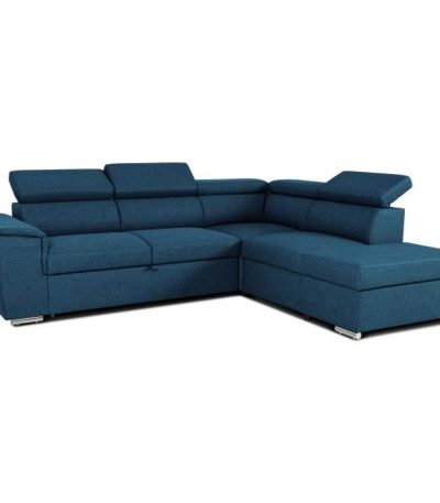 Reversible hoekbank met commode – 5 plaatsen – DAYTONA – Blauwe stof – 260 x 94 x 216 cm