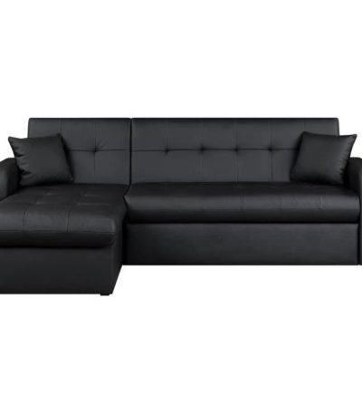 ROMAN Converteerbare hoekbank 3-zits + opbergdoos – Zwarte imitatie – Modern – L 235 x D 85 – 153 cm