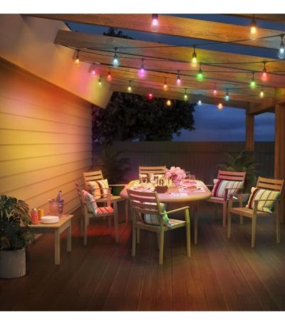 15 meter lange Wiz Garland voor buiten, perfect voor het toevoegen van een feestelijke sfeer aan je buitenruimte. Eenvoudig te installeren en te bedienen via de handige Wiz-app. Breng meer kleur en licht in je tuin en creëer een betoverende sfeer waar je van zult genieten. Maak van elke gelegenheid een speciale met deze slimme en verbonden slinger!
