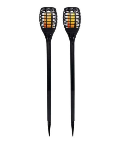 LUMI GARDEN- Set van 2 Maity Sun mini solar zaklampen, met een vlameffect en LED-verlichting. Met een hoogte van 70 cm stralen ze een warm wit licht uit.