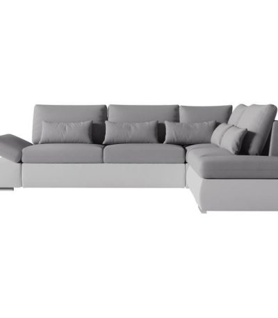 SEVARA 4-zits omkeerbare hoekbank – Wit PU en lichtgrijze stof – Opbergdoos – L267 x D200 x H90 cm