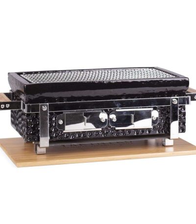 € 62,00Black Shichirin Tabletop BBQ Grill, perfect for indoor and outdoor grilling sessions. The grill measures 70 x 50 cm and comes with an accessory floor mat to protect your surfaces. Ideal for gatherings and BBQ parties. Enjoy delicious grilled meals with this stylish and functional grill that adds a touch of elegance to your space.