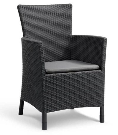 IOWA Graphite fauteuil in kunsthars (Polypropyleen-CaCo3) imitatie gevlochten hars met grijs kussen 100% polyester (62 x 60 x 89 cm) – Zelf te monteren – 2 jaar garantie – kleur: grijs – Merk: ALLIBERT