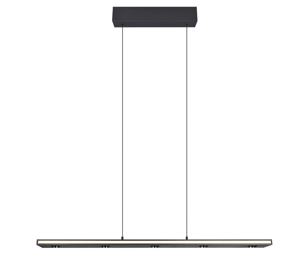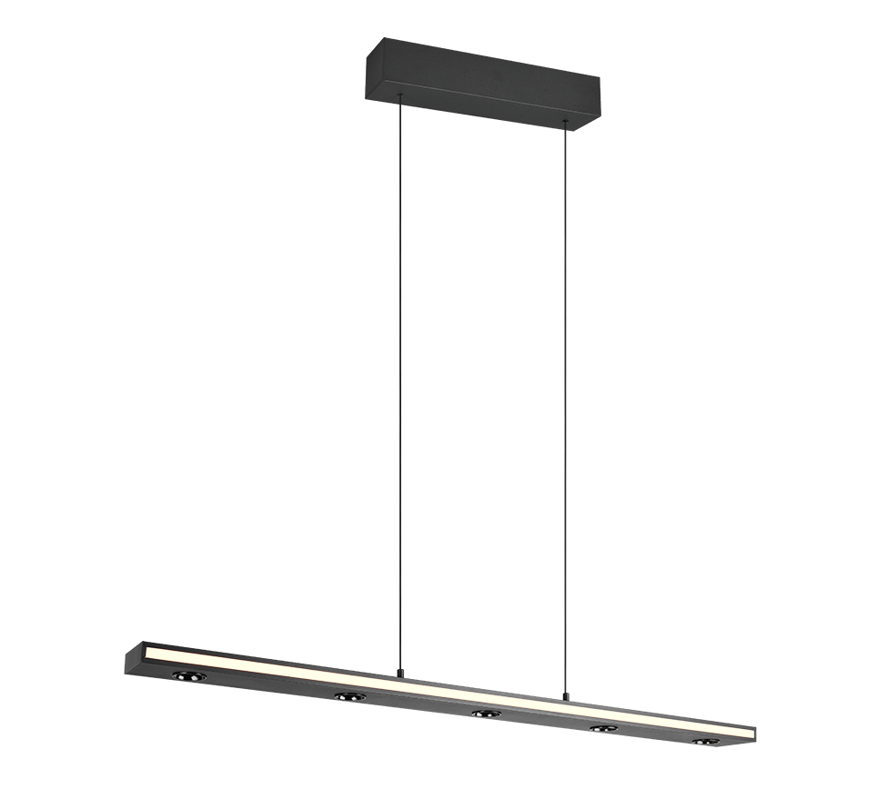 TRIO, Hanglamp, Graham inclusief LED, SMD, 4,5 Watt, 2300+3000+4000K, 480 Lm. en 1 x LED, SMD, 10,0 Watt, 2300+3000+4000K, 920 Lm. Deze hanglamp heeft een kunststof lampenkap in het wit en een matzwart metalen armatuur. De afmetingen zijn 109,0 cm lang, 9,0 cm breed en 200,0 cm hoog. Het is mogelijk om het bovenste en onderste lichtpunt afzonderlijk van elkaar in te schakelen. Daarnaast is de lamp voorzien van een geïntegreerde dimmer, instelbare lichttemperatuur, geheugenfunctie, en is in hoogte verstelbaar. De lamp heeft beschermingsklasse IP20 en is geschikt voor plafondmontage.