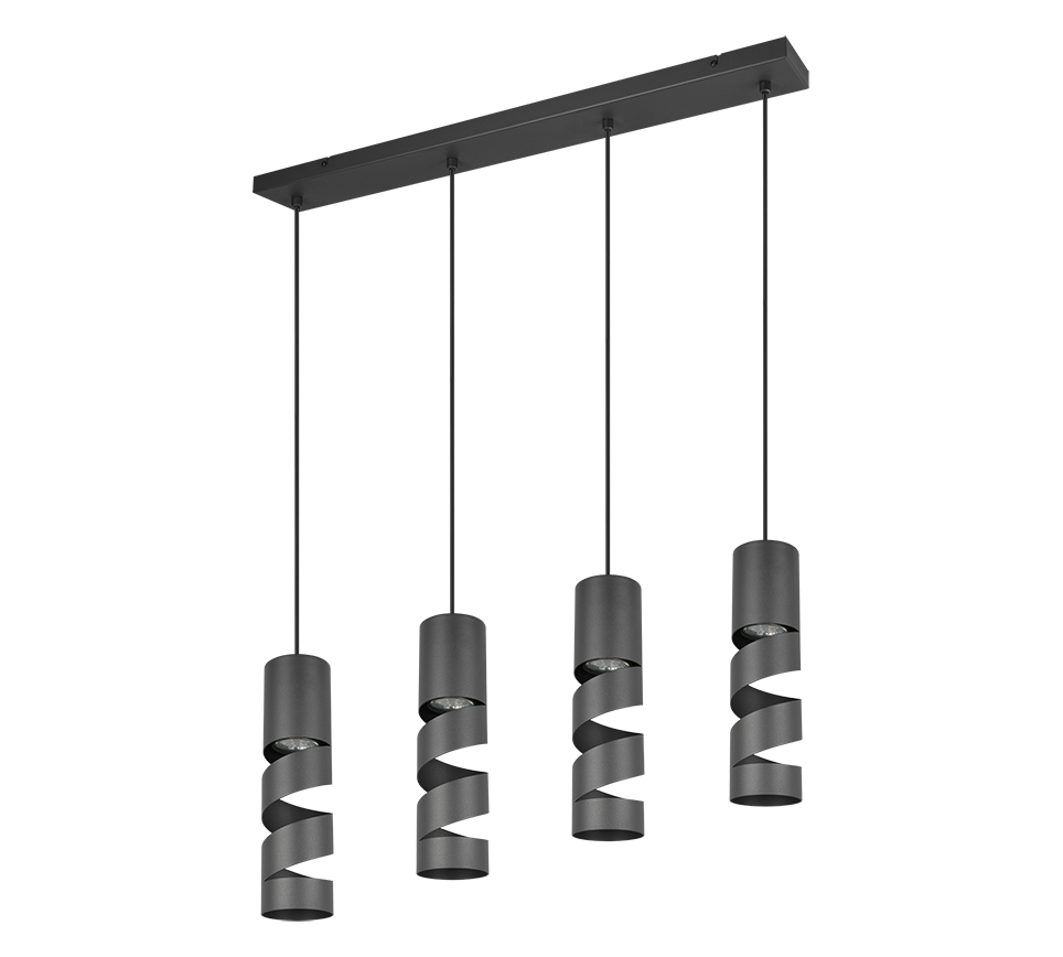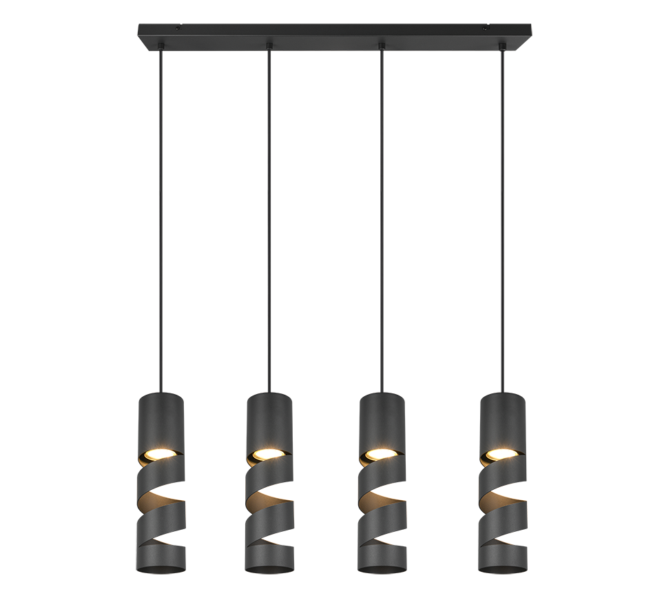 Ontdek de hanglamp met vier lichten uit de STREAM-serie – een prachtig kunstwerk dat doet denken aan de elegante vorm van kurkentrekkers. Met een eigentijds en tijdloos ontwerp voegt de STREAM-hanglamp ongeëvenaarde elegantie toe aan uw huis. De slanke cilindrische vorm van de lampenkappen maakt ze perfect voor verlichting boven eettafels of aanrechtbladen. Met zijn matte zwarte afwerking is deze lamp een stijlvolle toevoeging aan elk interieur, die smaakvolle accenten toevoegt. Voor energiebesparende verlichting wordt het gebruik van LED-lichtbronnen aanbevolen. Deze zijn een ideaal alternatief voor conventionele halogeenlampen en bieden een hoogwaardige lichtopbrengst met energiebesparingen tot 80%. Met LED-lichtbronnen geniet u ook van een lange levensduur, lage warmteontwikkeling en helpt u het milieu te beschermen.
