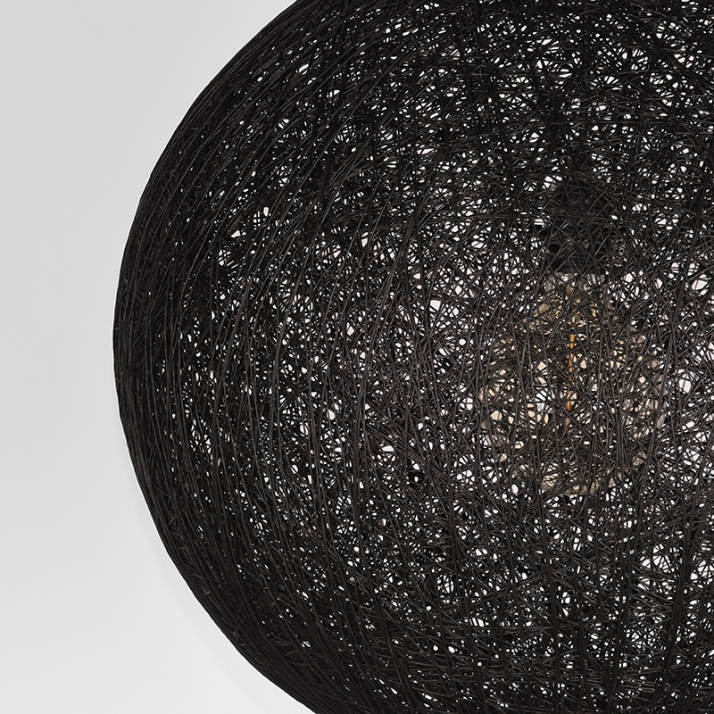 De Twist hanglamp is een elegante bol gemaakt van zwart vlasdraad met een diameter van 30 cm. Het vlasdraad creëert een speels lijnenspel en een fascinerend contrast tussen open en dicht, wat een sensationeel lichteffect geeft wanneer de lamp aan is.