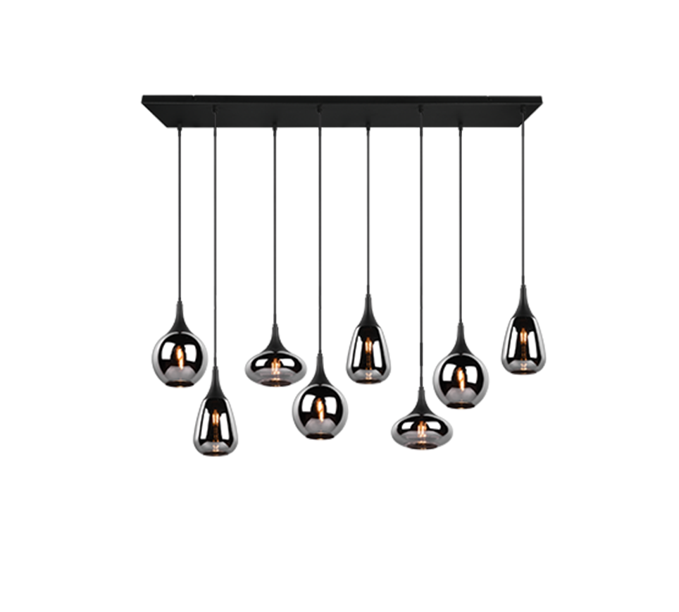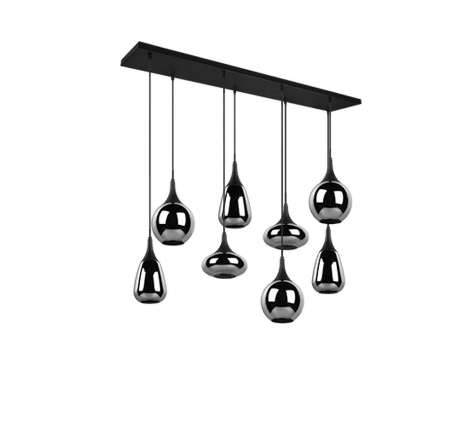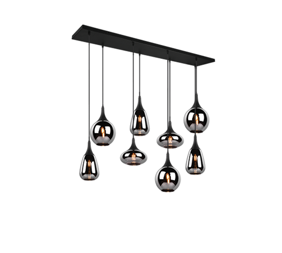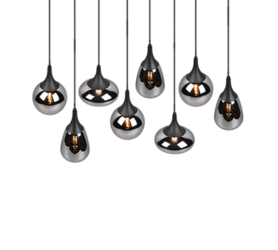 De pendelarmatuur LUMINA is met zijn elegante glazen kappen een opvallende eyecatcher in je leefruimte! De verschillende vormen van de acht kappen en de combinatie van metaal en glas creëren een prachtige en unieke lichtsfeer, waardoor je eethoek een moderne uitstraling krijgt. Het matte zwarte kleurenschema en de gerookte chromen glazen kappen bieden ruimte voor extra accenten, waardoor de lamp moeiteloos geïntegreerd kan worden in bestaande interieurconcepten. Voor energiezuinige verlichting wordt het gebruik van een led lichtbron aanbevolen. Deze vormen een ideaal alternatief voor standaard halogeenlampen, met een hoge lichtkwaliteit en een energiebesparing tot wel 80%. Bovendien profiteer je bij led lichtbronnen van een lange levensduur, minimale warmteontwikkeling en een milieuvriendelijke optie.