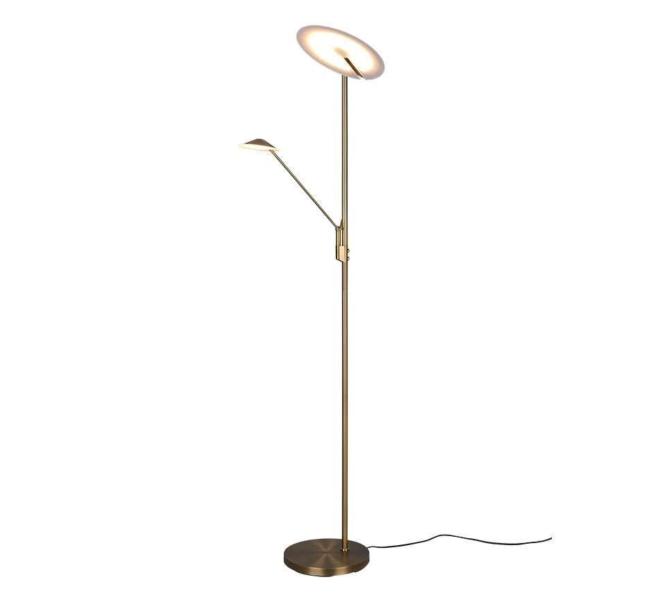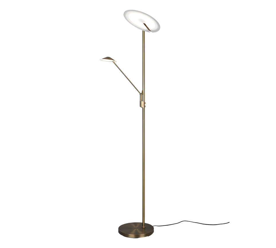 De moderne BRANTFORD schijnwerper is ideaal voor naast uw bureau of bank, met handige functies die u zeker zullen overtuigen. U kunt eenvoudig de helderheid en lichtkleur aanpassen met de ingebouwde sensordimmer. De hoofdverlichting en de leeslamp kunnen afzonderlijk worden bediend, zodat u het licht kunt instellen zoals u dat wenst. De lamp onthoudt ook automatisch het laatst gebruikte lichtscenario. In een klassieke oud messing afwerking past deze lamp perfect bij verschillende interieurstijlen. Daarnaast is de lamp uitgerust met moderne ledtechnologie die zorgt voor hoogwaardige verlichting en energiezuinigheid. Met ledlampen kunt u tot 80% besparen op energiekosten in vergelijking met halogeenlampen. Bovendien hebben ledlampen een langere levensduur, produceren ze weinig warmte en zijn ze milieuvriendelijk.
