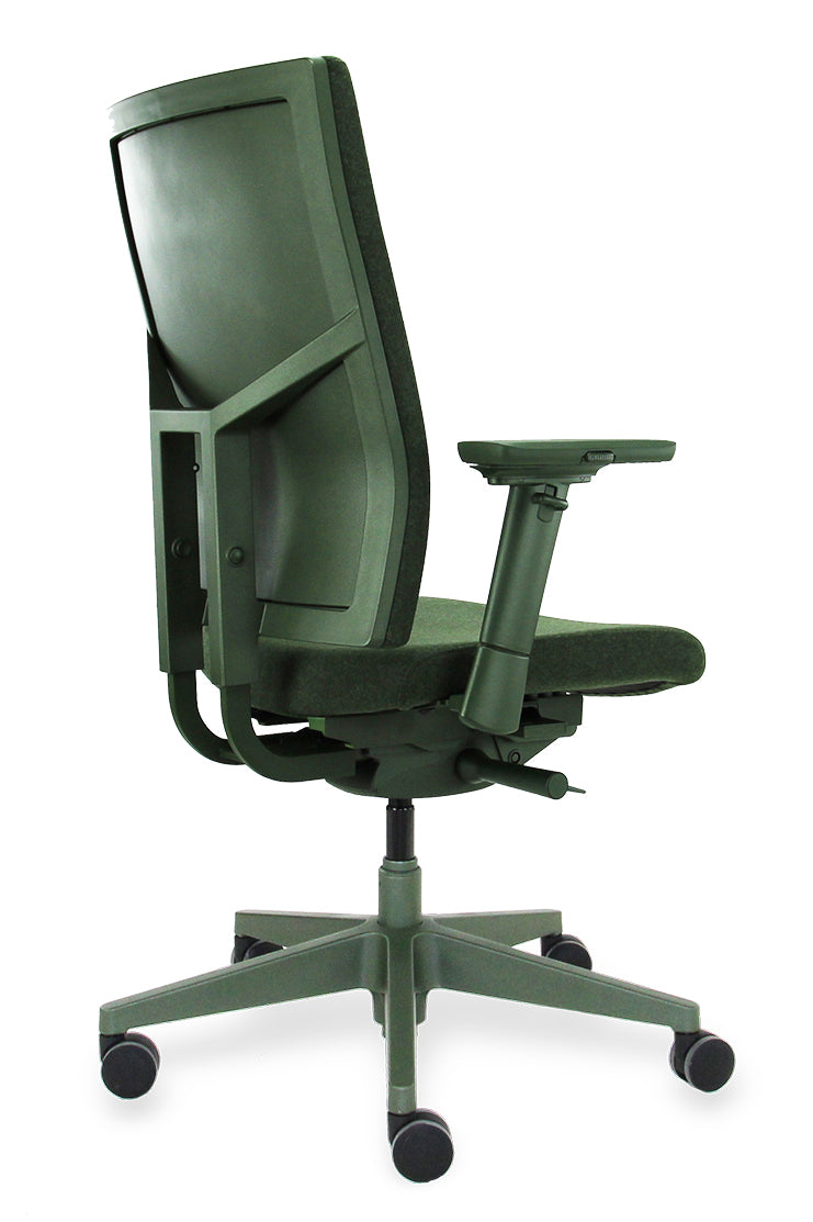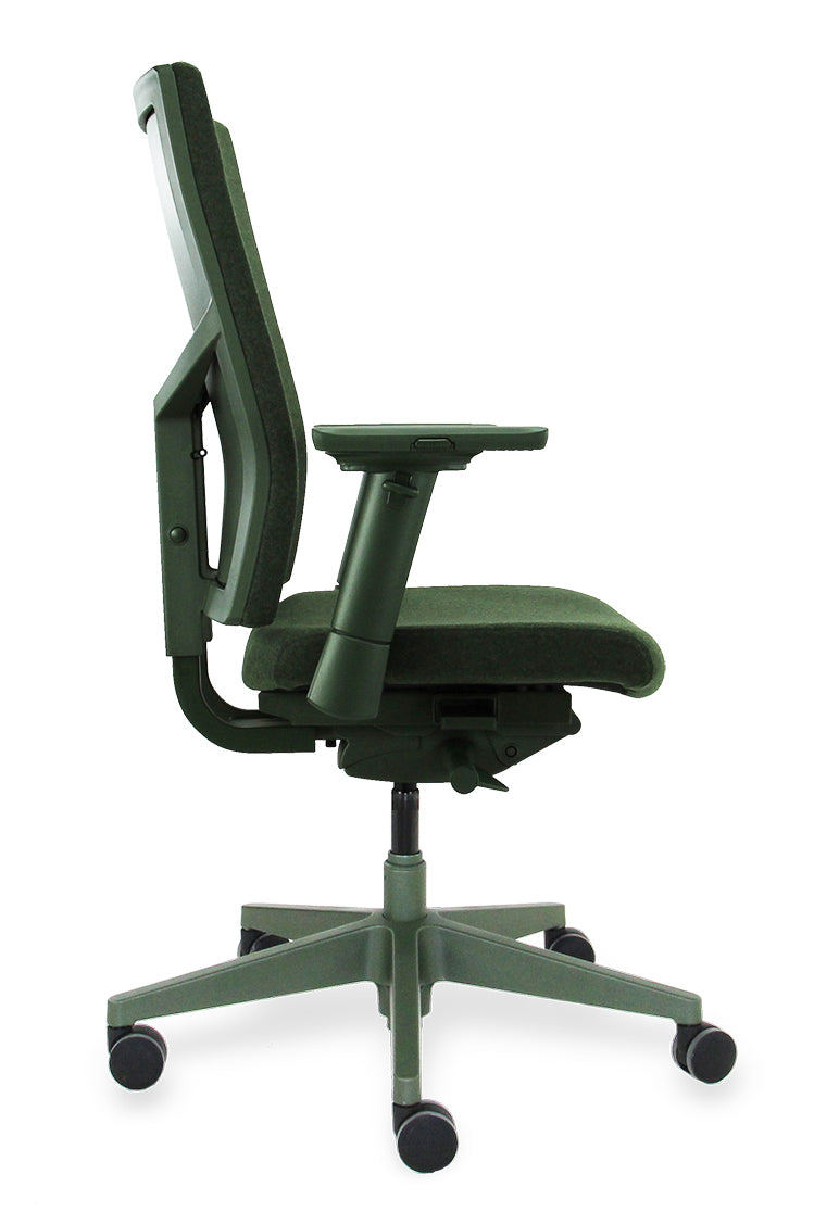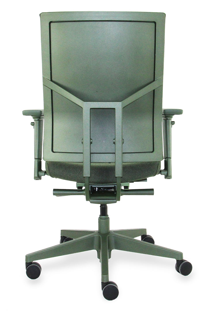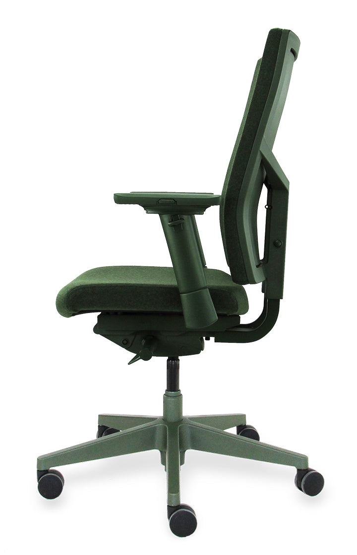 [Image description: Workliving Zuidas Comfort bureaustoel in olijfgroen met gerecyclede wolstoffering.]
