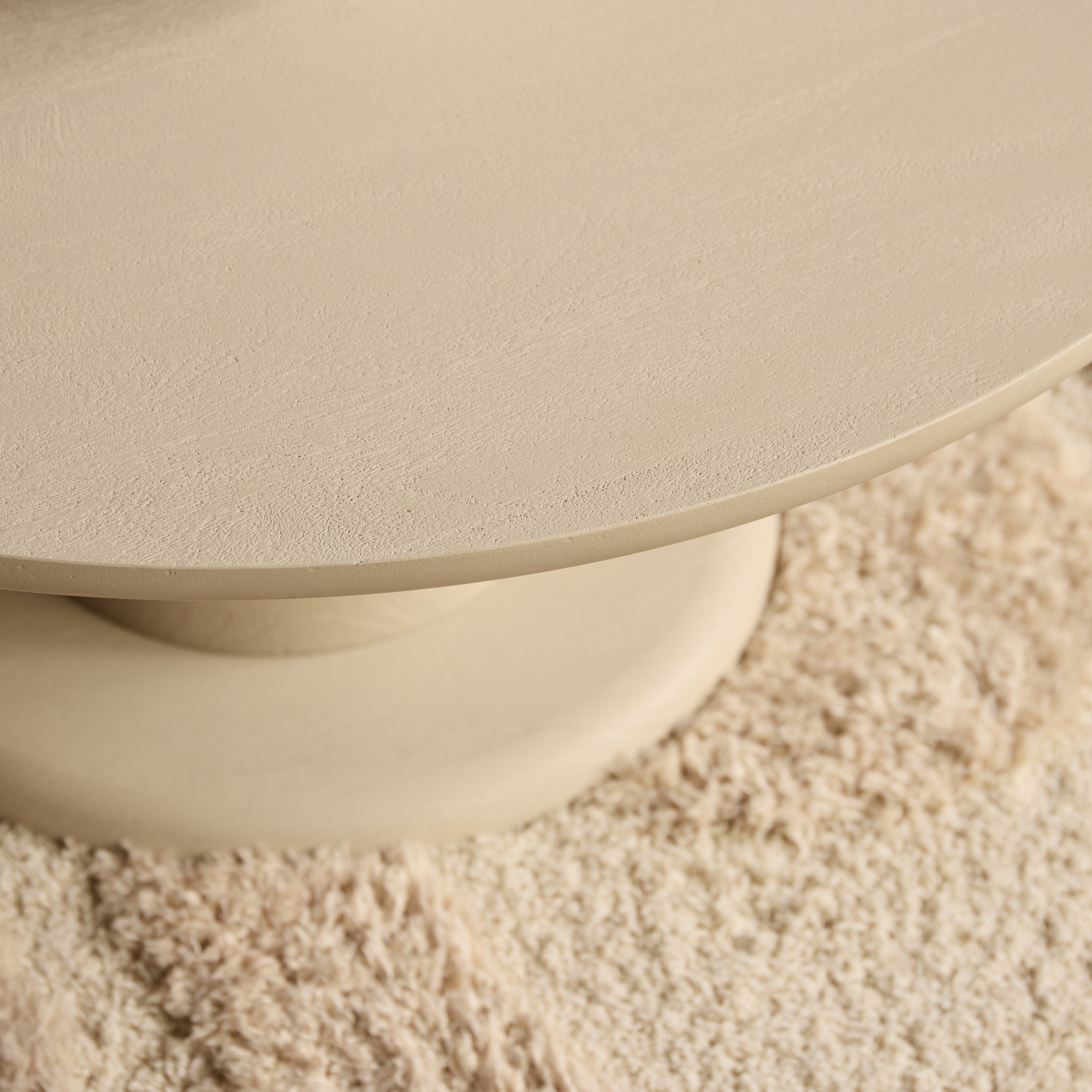 De salontafel Mabel heeft een uniek en opvallend ontwerp. Vervaardigd uit mangohout en met een fraaie zandkleurige afwerking, is deze salontafel een stijlvolle aanvulling op elk interieur.