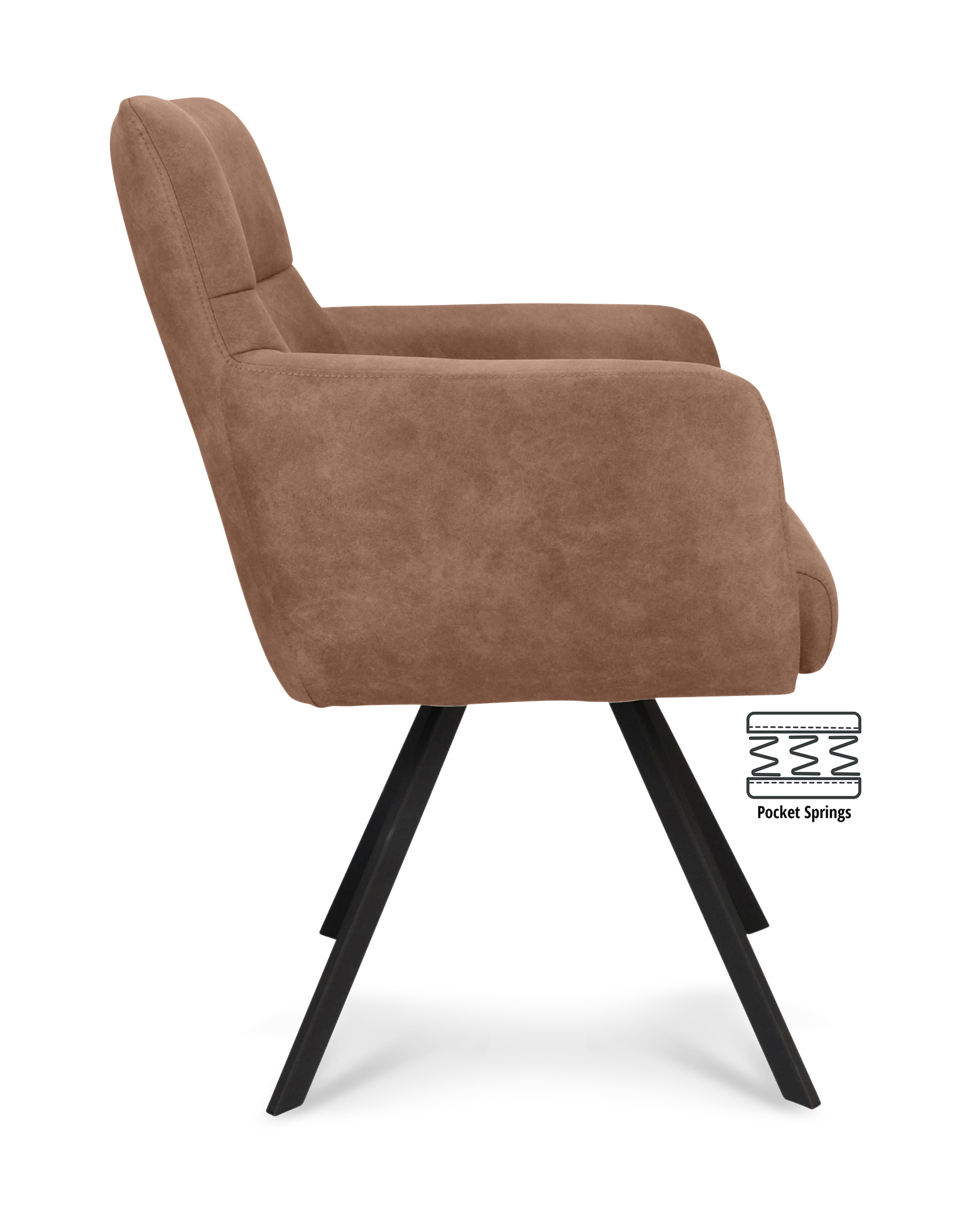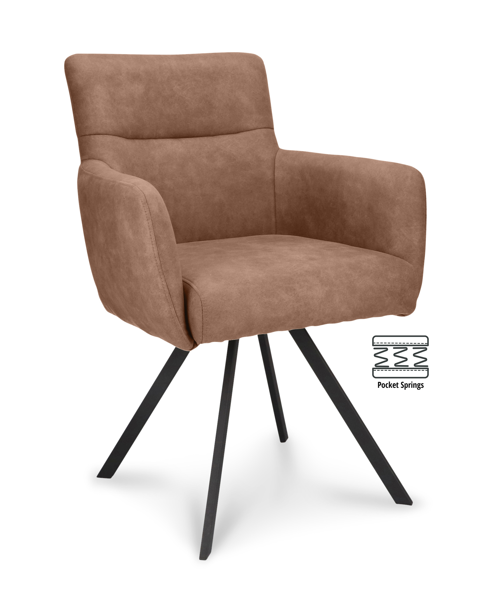 Home » Winkel » Zitmeubelen » Eetkamerstoelen » Armstoel Kane Stof Cowboy 801 Mocca Poot Zwart