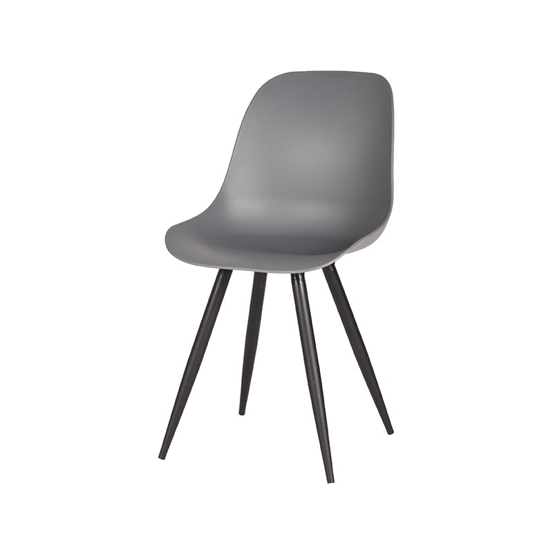 De Monza eetkamerstoel, gemaakt van antraciet polypropyleen, heeft een luxe en comfortabele zitting met elegante rondingen. Het duurzame materiaal is gebruiksvriendelijk en duurzaam. De licht taps toelopende poten van zwart metaal zorgen ervoor dat de stoel stevig op de grond staat en geven hem een speelse uitstraling.