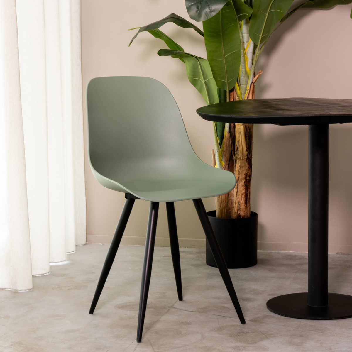De Monza eetkamerstoel, gemaakt van forest polypropyleen, heeft een luxe en comfortabele kuip met elegante rondingen. Het duurzame materiaal is gebruiksvriendelijk. De stoel staat stevig op de grond dankzij de licht taps toelopende poten van zwart metaal, die ook nog eens een speelse touch toevoegen.