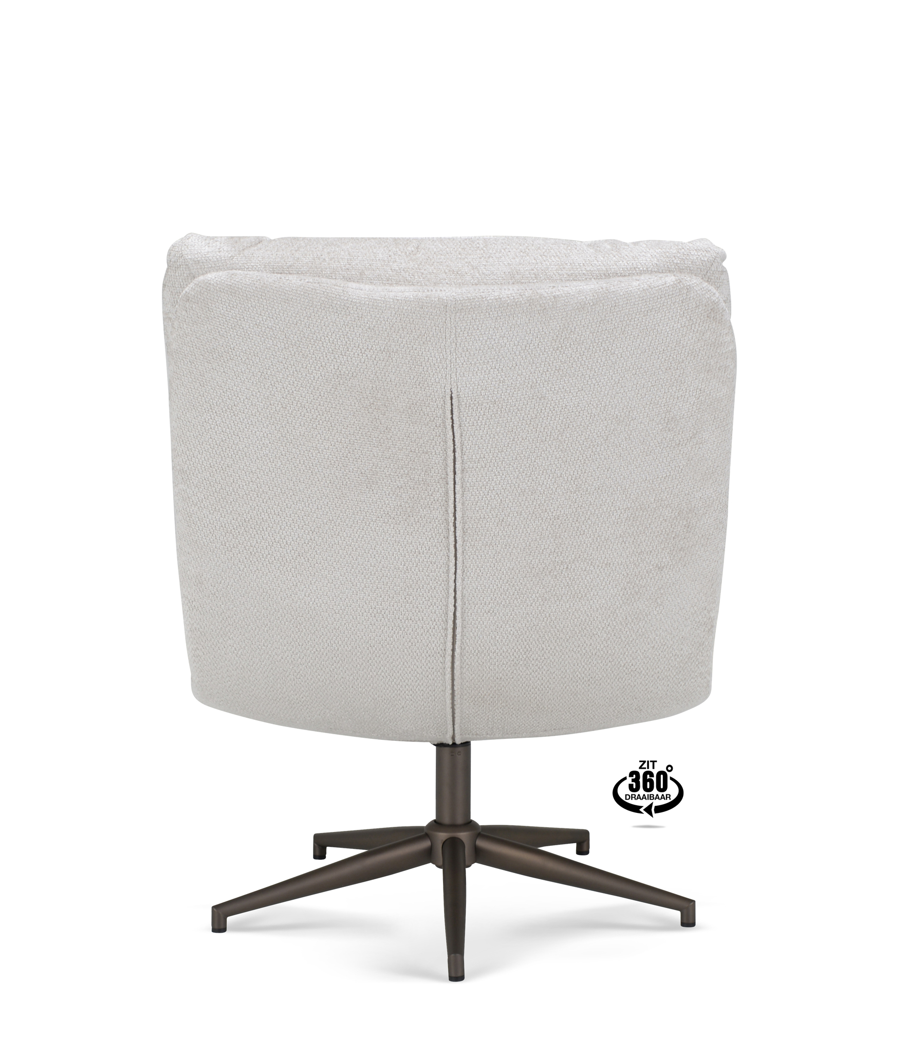 De zachte bekleding in de luxe Movie stof is verkrijgbaar in drie natuurlijke tinten: klei, natuur en taupe. Voeg het 360-graden draaimechanisme toe en je hebt een fauteuil die net zo flexibel is als stijlvol.